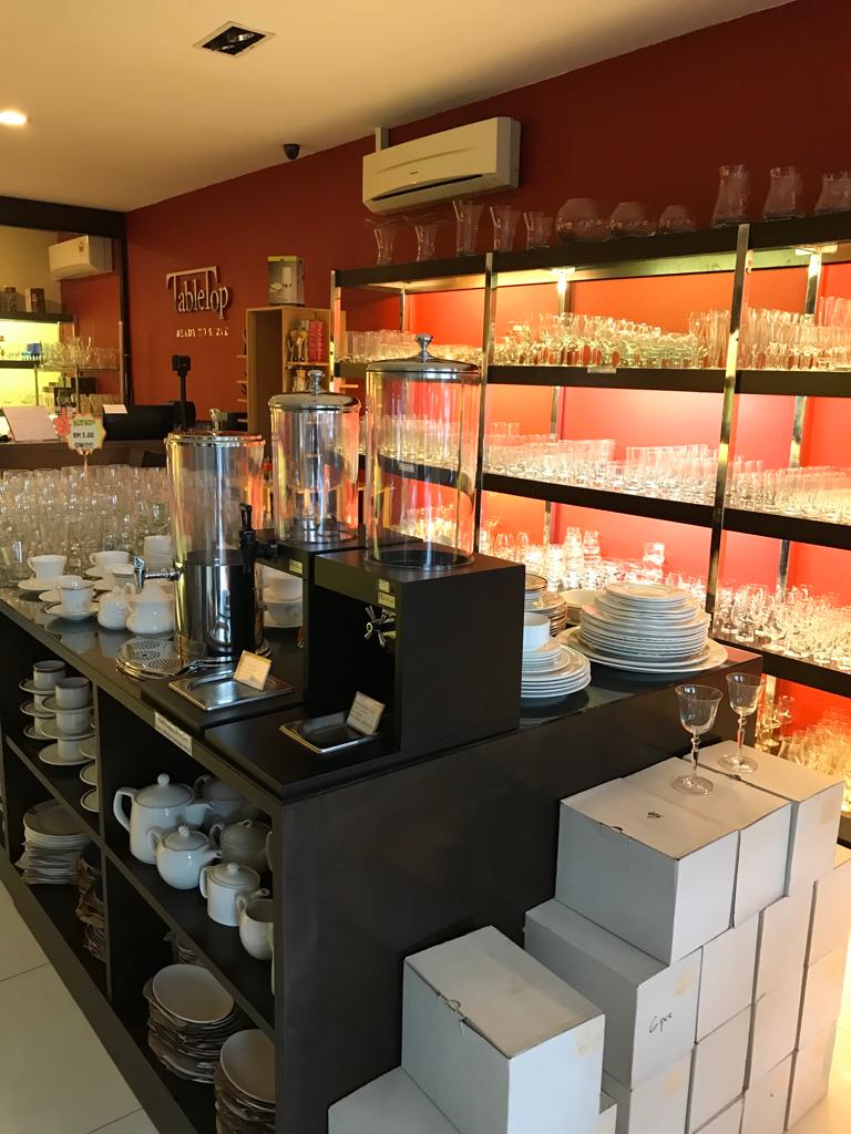 Tabletop Resources Sdn Bhd (a subsidiary company of Hospitality Resources Sdn Bhd) is a retail outlet at our ground floor with over 20 brands of products that are available in stock. Serving most restaurants and walk-in clients with small quantity, we offer the best prices for quality products. Clients can enjoy fantastic discounts during festive seasons and get products as low as RM5.00!